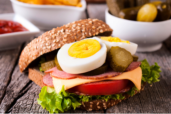 Sendvič sa kuvanim jajetom, salamom, salatom i sirom
